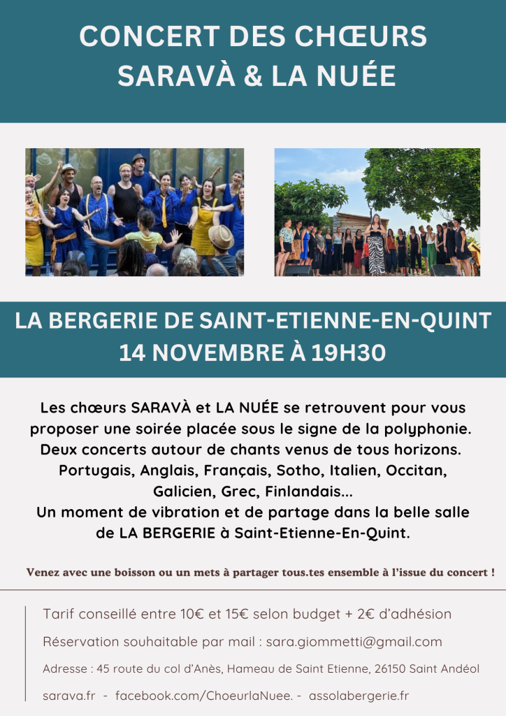 - 14 novembre 2025 – La Bergerie de St Etienne en Quint, avec le Chœur La Nuée